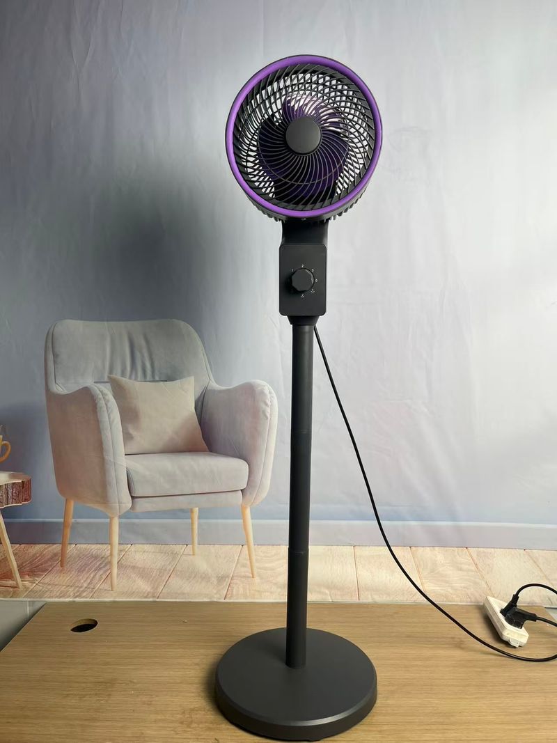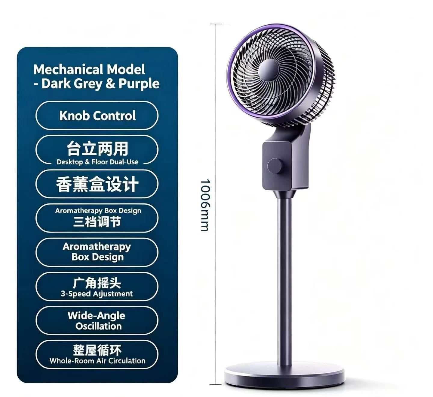 Air circulation vertical floor electric fan three-tube adjustment, aromatherapy box design can put aromatherapy, double-layer composite chassis