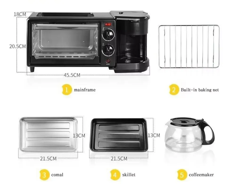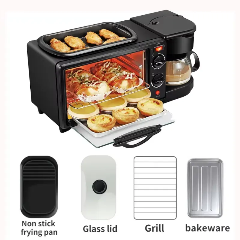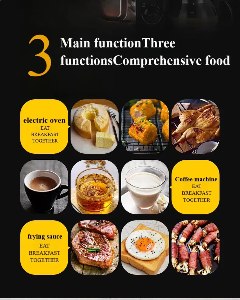 Multi-functional breakfast machine oven, coffee machine and flat-bottom frying pan in one