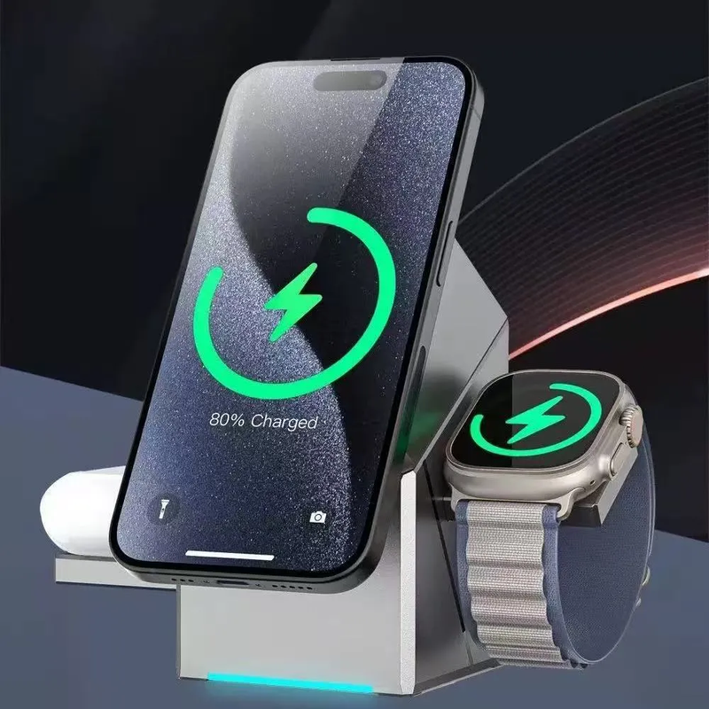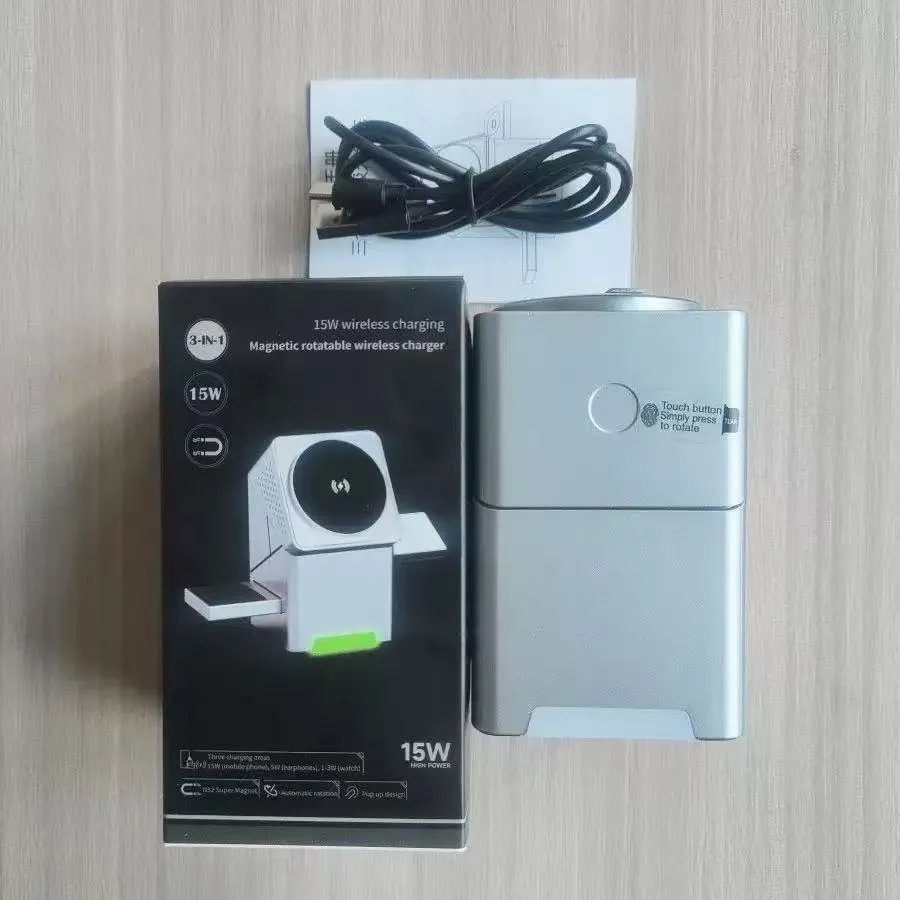 Rubik's Cube Rotating Three-In-One Wireless Charging Desktop Stand Multi-Function Watch Headset Mobile Phone Fast Charging Magnetic Suction