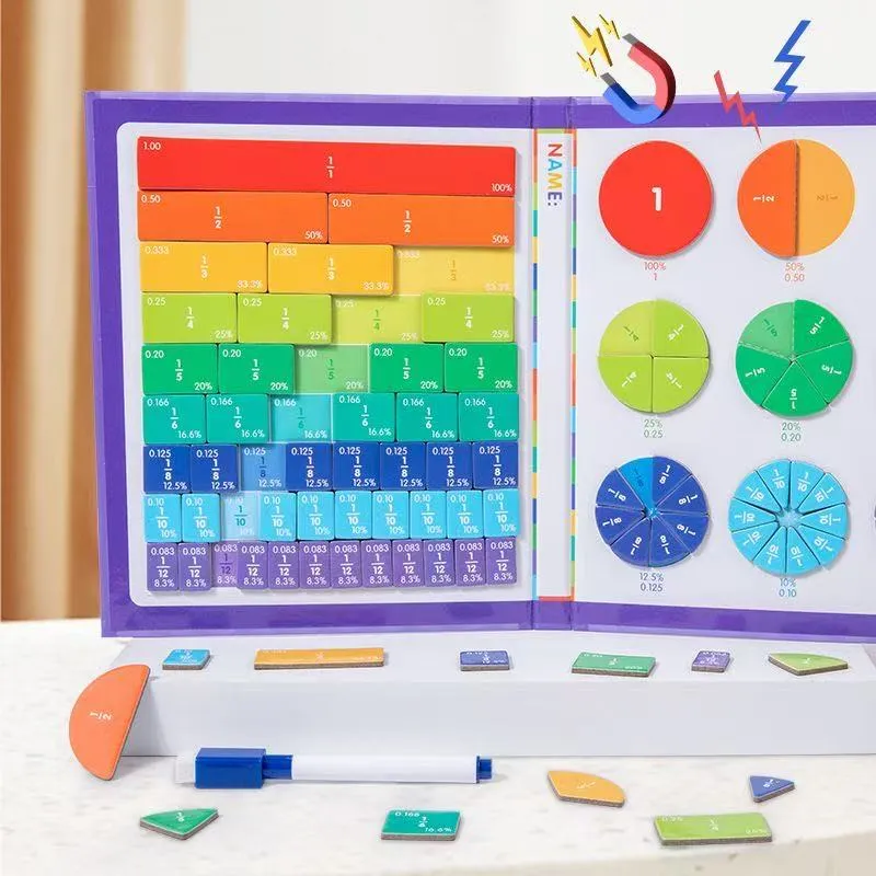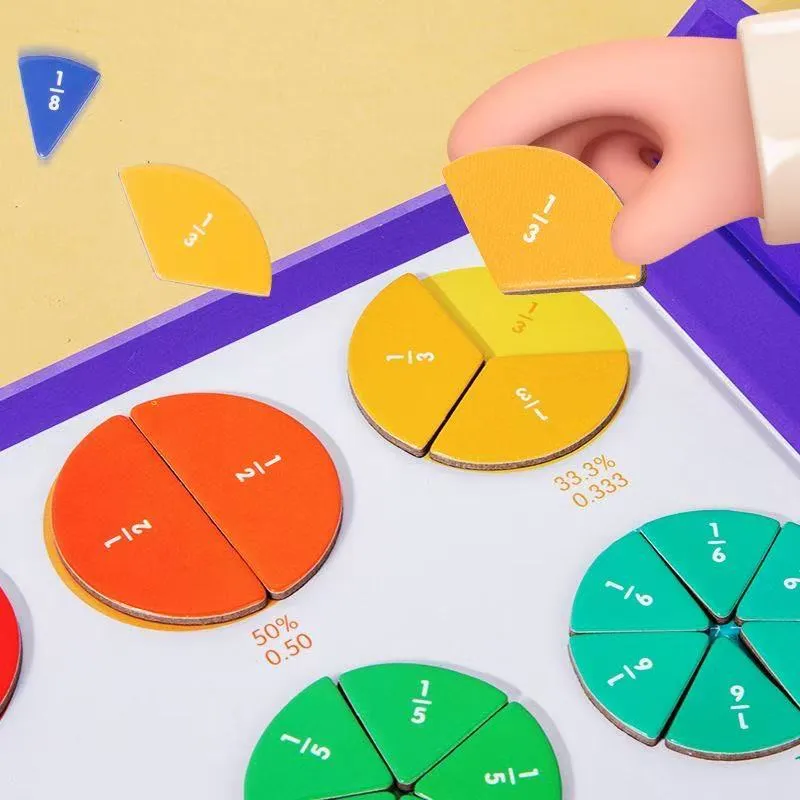 Score demonstration device with magnetic adsorption disk - mathematics teaching auxiliary tool, focussing on molecules and denominators.